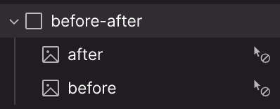 Ajoute une "div" avec la classe "before-after", puis à l'intérieur places-y 2 éléments "image" avec les classes "after" et "before" et ajoute les images de ton choix.